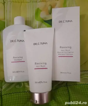 Vând set de 3 produse împotriva căderii părului, de la Farmasi Dr. C Tuna, pe bază de usturoi, Capyxil şi Trichogen, compus din : - Şampon Revitalizant cu Extract de Usturoi şi Capyxil 500 ml, - Mască de păr Revitalizant 200 ml, - Ulei Concentrat Revitalizant 30 ml. Şamponul ajută la întărirea şi îngroşarea ...