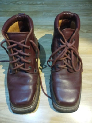 Măsurați de mine la interior au 254 mm. Exterior din piele de calitate, limba este tot din piele, interior textil plus piele, talpă Vibram, groasă și cusută pe margine, bombeu metalic, cusături duble plus capse, branțuri groase și moi. Nu știu de la ce firmă sunt, construcție solidă, fără defecte, purtați ...