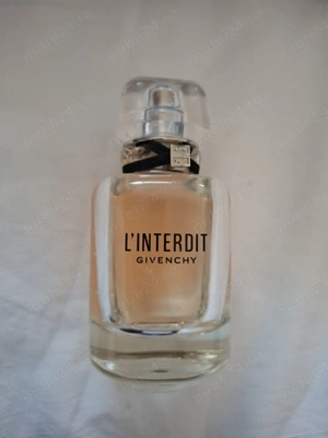 Vând apă de toaletă Givenchy L'Interdit (EdT), varianta luminoasă și elegantă a celebrului parfum. Este o compoziție floral-lemnoasă, ideală pentru purtarea zilnică. Cantitate: Sticlă de 80 ml (s-au consumat aproximativ 15 ml, vezi nivelul exact în poze). Concentrație: Eau de Toilette. Batch Code: 1J02 ...