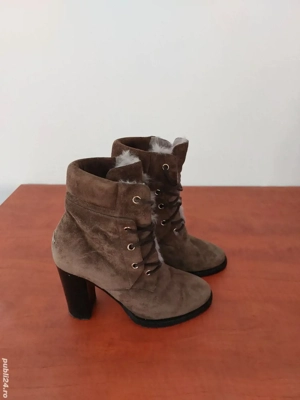 Ghete din piele intoarsa cu blana naturala de iepure, masura 36, purtate o singura data. Ghetele sunt originale, achizitionate din Barcelona.