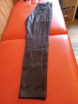 Pantaloni din piele, groasă dar foarte fina, nr 38 SH, foarte puțin folosiți de culoare maron, proveniență Belgia. Preț 100 lei Predare personală în București.