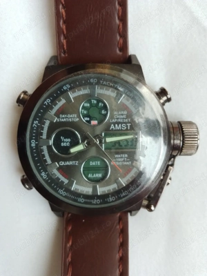 Ceas barbatesc AMST 3003 Analog-digital Material: Stainless Steel Rezistent la apa: 3 ATM (3 ATM e 30 meters sau 100 feet) Ecranul arata: Data, Calendar, Multiple Time Zone, Cronometru, Ceas analogic si digital, Alarma Shock Resistant Diametru ecran: 4,6 cm Grosime: 1,2 cm Quartz Original JAPONIA Curea ...
