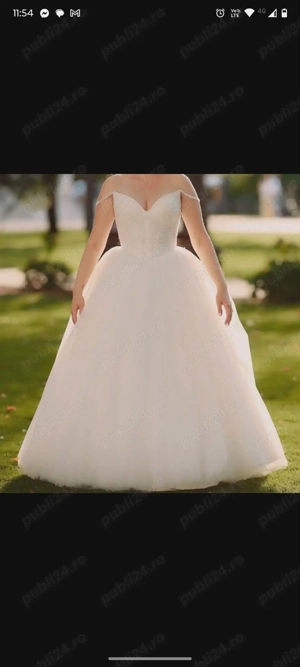 Vand rochie de mireasa tip printesa, in stare perfecta. Culoare Ivory. Este reglabil cu snur,peste snur este fermoar. (Vezi poze). Se poate purta de la marimea XS pana la M fiind reglabil. Rochia este Editie limitata. Cadou jupon cu cerc nr.1