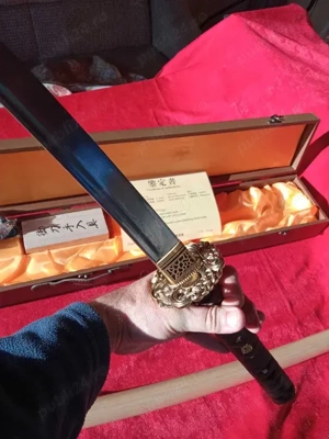 KATANA DAMASC sabie REALA samurai, perfect ASCUTITA, din Otel de DAMASC autentic (are aprox.8000 de STRATURI de otel), o piesa deosebita de LUX . O lama absolut Superba din Otel rar de Damasc foarte rezistent, CALIT si Forjat MANUAL in aprox. 8000 straturi ( straturile se vad clar absolut superb de-a ...