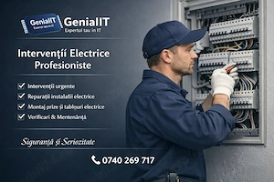 Firma GenialIT Tulcea autorizată și în domeniul instalațiilor electrice îți oferă servicii rapide și profesioniste: Intervenții urgente Reparații instalații electrice Montaj prize, întrerupătoare, tablouri electrice Verificări și mentenanță Siguranță și execuție conform standardelor ...