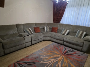 Canapea confortabila Mobexpert din stofa, cu 3 reclinere încorporate. Consola centrala cu priza si USB si loc pentru 2 pahare. Dimensiun 3.2X3.1. Acesta reprezintă o soluție ideală pentru amenajarea spațiului de living.