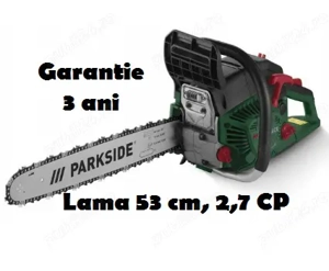 Fierăstrău cu lanț pe benzină Parkside nou, cu garanție 3 ani. Accesorii incluse: lant gata de taiere nu de proba !, recipient cu ulei, recipient gradat pentru benzina, cheie. Este nou nouta, exact ca in poze. Am scos-o din cutie doar pentru poze! .Lungime taiere 44 cm, putere 2.7 HP, 11500 RPM. se preda ...
