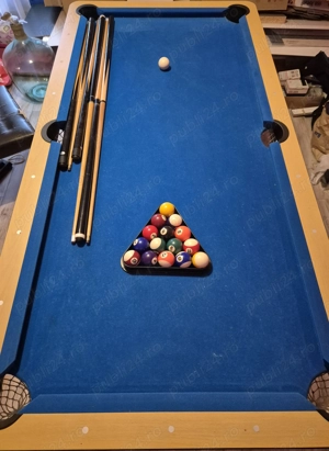 Vând masă de biliard Masă de biliard completă, ideală pentru casă sau spațiu de relaxare. Include bile, tacuri și triunghi. Stare foarte bună, puțin folosită. Pentru mai multe detalii sau preț, nu ezita să-mi dai mesaj în privat