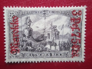 Vind--3 P 75 C auf 3 Mk Kriegsdruck, 26:17 Zähnungslöcher, in seltener dunkelzinnoberroter Aufdruckfarbe! Ungebrauchtes Prachtstück, normal gezähnt und farbfrisch in fehlerfreier Erhaltung