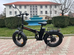 Motor: 750W Baterie: 48V 17,5 h detașabilă, autonomie 80 - 100 km 7 viteze Frâne pe disc față spate Roți 20 x 4.0 tip fat confort și stabilitate pe orice teren Suspensie față spate (full suspension) Cadru pliabil din aluminiu ușor și solid Display LCD Moduri de condus: electric asistat și accelerație ...