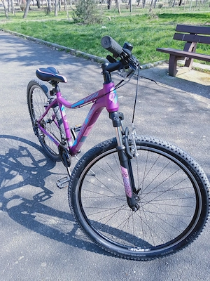 Vând bicicleta de damă cu cadru de aluminiu, echipata complet, cu schimbator cu 3 viteze în butuc. Rotile sunt pe 26 inchi. Frână fata la mâna, frâna spate în butuc. Merge foarte bine, fără defecțiuni. Preț 700 lei, ușor negociabil.