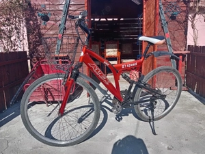 Vând bicicleta full suspension roti 26inch cu cos, schimbătoare schimbate recent, funcționează foarte bine, estetic arata bine pentru varsta ei preț 550ron negociabil Se poate vedea in Pustiniș jud Timiș Nu ofer transport