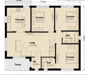 Casa modernă cu 3 dormitoare , 2 bai , 97 metri pătrați utili la ieșire din Moara grecilor . Zona foarte liniștita , plină de verdeața , dealuri . Casa are 470 metri pătrați teren , la drum privat .