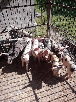 Vând 11 purcei frumoși de 9 săptămâni ÎNȚĂRCAȚI, CASTRAȚI și DEPARAZITAȚI cu 250 lei dacă se iau toți