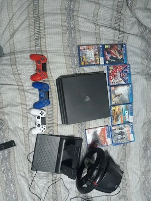 vând PS 4 în stare foarte buna mentenanță făcută recent,7jocuri, 3cont, volan Hori Apex