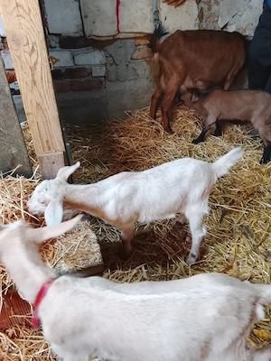 Vând 2 iedute (cele deschise la culoare) de o luna, alpin francez cu anglonubian. Mamele se vad in poze. 500 lei bucata. Homorog. Bihor.