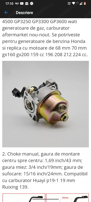 de vânzare carburator motocositoare nou. detalii tehnice sunt in poze.