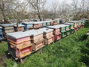 Vând familii de albine cu tot cu cutii 1  1 pe 10 rame cu tot cu magazii 1 2 si rame crescute.
