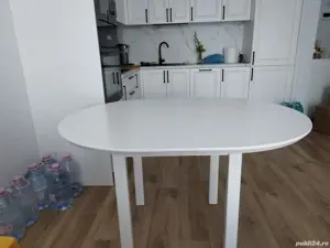 Vând masă de bucătărie extensibila din lemn masiv Lungime extensibila 1,29 Înălțime 76 cm Raza 1 m Cumpărată in decembrie 2024 Preț fix