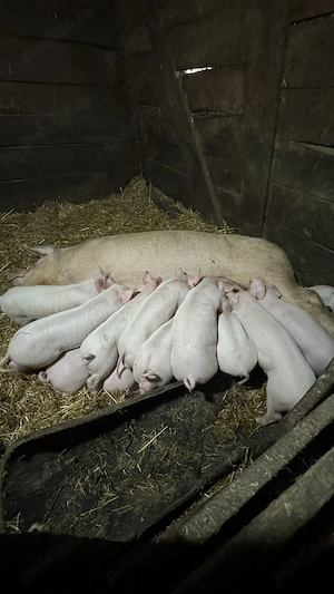 Vand 25 de purcei Landrace de la doua scroafe foarte bune exact cum se vad in poza . Purcei au 6 saptamani doar ca is foarte mari cum se si vad in poze ! Provin dintr.o linie de porci foarte buna !!! TEL sau