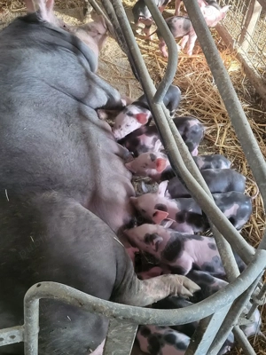 Vand scroafa pietran cu 12 purceii la treia fatare 8 m 4 s pret 8000 lei porci se afla in localitatea Munar 10 minute de Periam